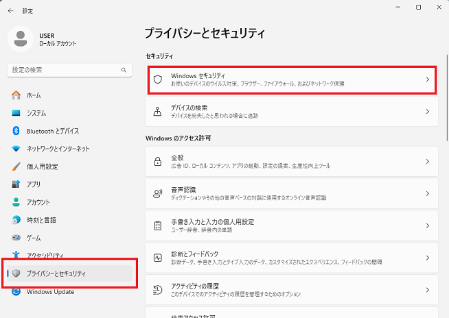 2.「プライバシーとセキュリティ」「Windowsセキュリティ」をクリックして下さい。